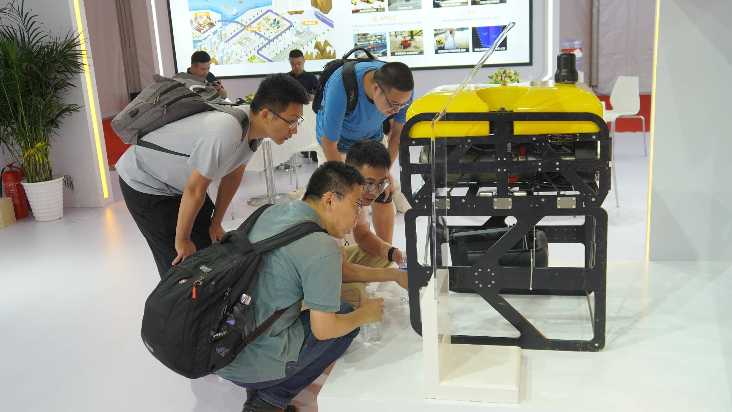 申昊科技展示的申龍一號水下機器人是展臺亮點之一。公司以“海陸空隧”戰略目標,向海底世界進軍。該機器人負載能力強,適合搭載水下作業機械手進行救助打撈工作。其強大的運動能力可以在作業水域快速運輸緊急消防物資;其在線圖像增強和實時目標識別攝像系統,可以更加清晰的獲取水下影像,方便進行監測和圈定有效目標物。吸引了眾多觀眾興趣和咨詢。